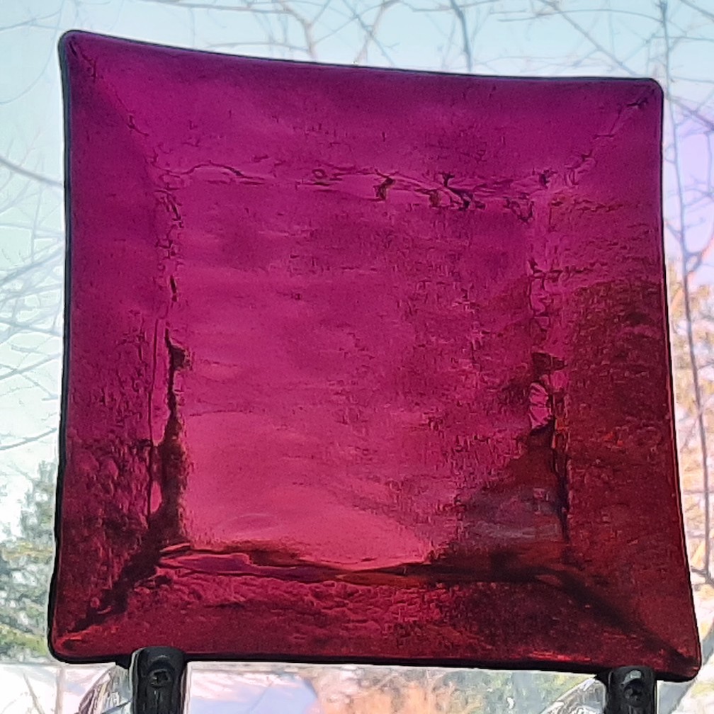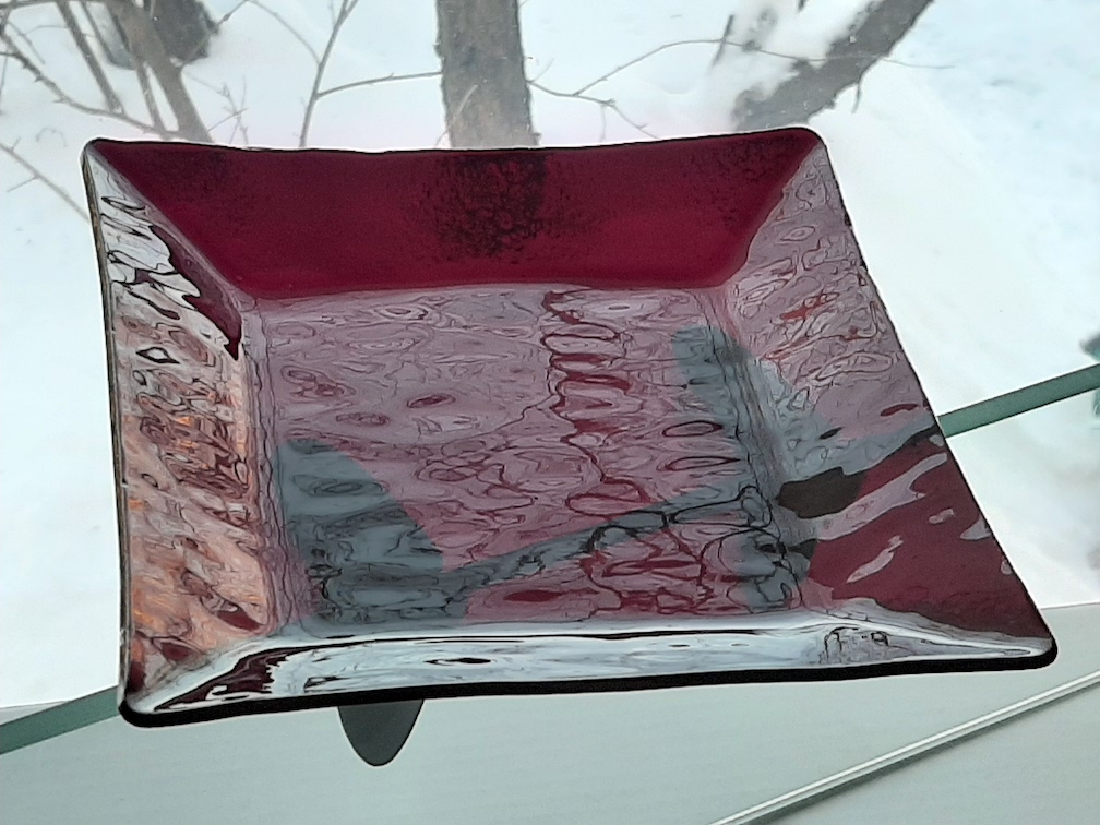 Pikkulautanen ”Viinitarha” on valmistettu yhdestä sileäpintaisesta, läpinäkyvästä, viininpunaisesta erikoislasineliöstä yhdessä poltossa muottiin taivuttamalla.