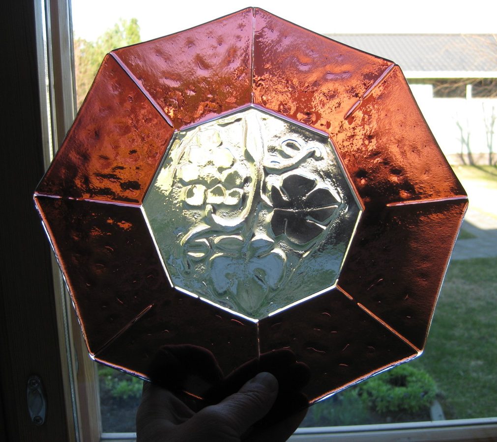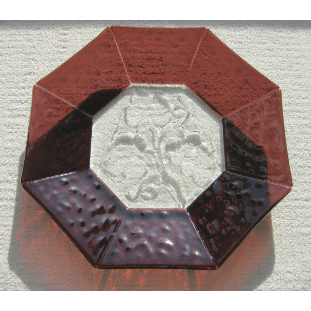 Viinirypäleet 8 on kirkas/violetti 8-kulmioinen kaksikerroksinen System 96 -lasivati/lautanen, johon on painettu viinirypäleterttureliefi.