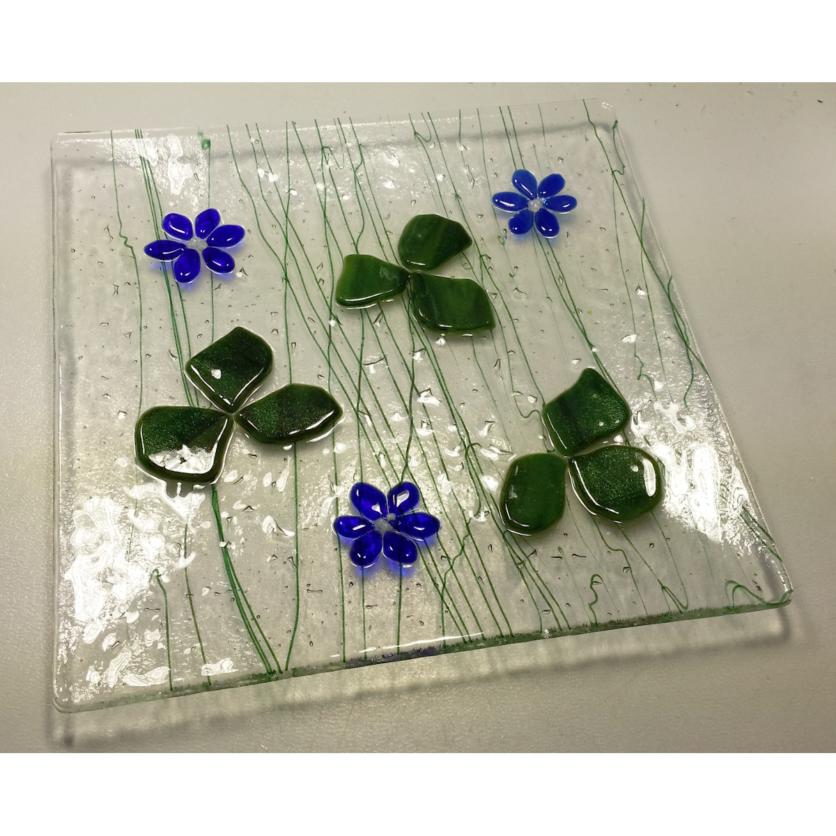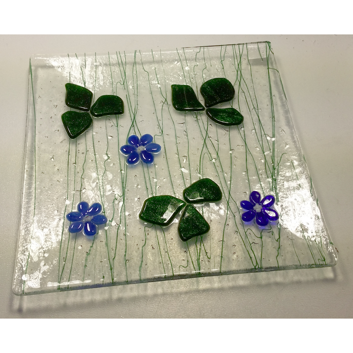 Sinivuokkolautanen on kirkas kaksikerroksinen sinivuokkoaiheinen Bullseye-lasilautanen. Kaksi erilaista kuvioversiota.